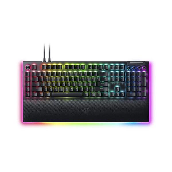 - 『BlackWidow V4 Pro』はコマンドダイヤル、8 個の専用マクロキー、メディアコントロール、アンダーグロー式ライティング搭載のフルサイズの有線モデルです。「BlackWidow V4 Pro Green Switch」■没入感あふれるアンダーグローとキー別ライティングキー別ライティングとキーボードをさまざまな角度から照らし出す印象的なアンダーグローを備えています。バトルステーションと同期させることにより、数百の対応ゲームで優れた没入感が体験できます。■RAZER コマンドダイヤルと 8 つの専用マクロキーカスタム機能をキーボードのプログラム可能なダイヤルに割り当ててバトルステーションを高度にコントロール。不可欠なキーバインドを割り当てたマクロキーセットを使用することで、制御性を高めてゲームプレイを楽しむことができます。■RAZER グリーン クリッキーメカニカルスイッチクラシックタイプ。すべてのキータッチで、その感触と音を確かめたい人のために、Razer グリーン クリッキーメカニカルスイッチは、タクタイルバンプ機能 (押し込み感) と独特のクリックサウンドとともに、クラス最高のゲーミングパフォーマンスとタイピングパフォーマンスのために最適化されたアクチュエーションポイントとリセットポイントを備えています。■マグネット式のソフトなレザーレット製リストレスト (アンダーグロー搭載)】長時間のゲームプレイに安定したサポートを提供するために設計された、ソフトでクッション性に優れたリストレストは、Razer Chroma RGB にも対応しており、キーボードのアンダーグローと完璧に調和します。■ダブルショット ABS キーキャップダブルショット射出成形によるラベルは摩損することなく、キーキャップも非常に厚みのあるウォールで作られており、白熱したゲームプレイにも十分に耐える優れた強度を備えています。■マルチファンクションローラーと 4 つのメディアキー停止、再生、スキップしたり、明るさから音量まであらゆる要素を調整したりでき、究極の利便性でエンターテイメントを楽しめます。