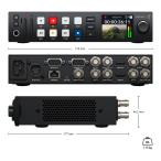 - 製品概要 HyperDeck Studio HD PlusはMiniモデルの全機能に加え、サイズが大きいため、より多くのコントロールと接続を搭載。このモデルは6G-SDIに対応しているため、30fpsのUltra HDまでのProRes収録・再生が可能で、SDIループ出力とHDRもサポートしています。2つの6G-SDI出力では、1080p60までのフィル&キーの再生にも対応。HDMI入力とオーバーレイに対応した専用の3G-SDIモニタリング出力も搭載しています。フロントパネルでボタンを押すと、専用のRS-422リモート出力に送信されます。また、DC電源は放送スタイルのXLRコネクターを採用。フロントパネルには、トランスポートコントロールボタン、ヘッドフォンソケット、スピーカーを搭載しています。 仕様 接続 ・SDIビデオ入力:1 ・SDIビデオ出力:2 ・SDIモニタリング出力:1 ・SDIレート:270Mb、1.5G、3G、6G。 ・HDMI 2.0ビデオ入力:1 ・HDMI2.0ビデオ出力:1 ・内蔵スピーカー:モノ ・オーディオ出力:6.35mmヘッドフォンジャック x1 ・スクリーン:2.2インチLCD ・タイムコード接続:BNC入力 x1、BNC出力 x1 ・リファレンス接続:BNC入力 x1、BNC出力 x1、3値シンクまたはブラックバースト ・SDIオーディオ入力:16chのエンベデッドオーディオ ・SDIオーディオ出力:16chのエンベデッドオーディオ ・HDMIオーディオ入力:8chのエンベデッドオーディオ ・HDMIオーディオ出力:8chのエンベデッドオーディオ ・リモートコントロール:RS-422入力 x1、RS-422出力 x1 ・レコーダーコンフィギュレーション:ユーザーインターフェースまたはBlackmagic HyperDeck Ethernet Protocol経由 ・イーサネット:1Gb/s ・コンピューターインターフェース:USBタイプC 3.0 x1(最大5Gb/s)外付けドライブ収録、ウェブカム出力、ソフトウェア設定およびアップデート用 フォーマット ・SDビデオフォーマット 525i59.94 NTSC、625i50 PAL ・HDビデオフォーマット 720p50、720p59.94、720p60 1080i50、1080i59.94、1080i60 1080p23.98、1080p24、1080p25、1080p29.97、1080p30、1080p50、1080p59.94、1080p60 1080PsF23.98、1080PsF24、1080PsF25、1080PsF29.97、1080PsF30 ・2K DCIビデオフォーマット 2Kp23.98 DCI、2Kp24 DCI、2Kp25 DCI、2Kp29.97 DCI、2Kp30 DCI Ultra HDビデオフォーマット 2160p23.98、2160p24、2160p25、2160p29.97、2160p30 ・4K DCIビデオフォーマット 4Kp23.98 DCI、4Kp24 DCI、4Kp25 DCI、4Kp29.97 DCI、4Kp30 DCI ・SDI規格 SMPTE 259M、SMPTE 292M、SMPTE 296M、SMPTE 372M、SMPTE 424M、SMPTE 425M level AおよびB、SMPTE 2081-1、SMPTE 2081-10、SMPTE 2084、SMPTE 2108-1 ・対応SDIメタデータ HD RP188、クローズドキャプションCEA-708。SDIでサポートしているHDRメタデータ ・対応HDMIフォーマット 525i59.94 NTSC、625i50 PAL, 720p50、720p59.94、720p60, 1080i50、1080i59.94、1080i60, 1080p23.98、1080p24、1080p25、1080p29.97、1080p30、1080p50、1080p59.94、1080p60, 2Kp23.98 DCI、2Kp24 DCI、2Kp25 DCI、2Kp29.97 DCI、2Kp30 DCI, 2160p23.98、2160p24、2160p25、2160p29.97, 2160p30, 4Kp23.98 DCI、4Kp24 DCI、4Kp25 DCI、4Kp29.97 DCI、4Kp30 DCI オーディオサンプリング テレビ標準サンプルレート(48 kHz/24-bit) ・ビデオサンプリング 4:2:2 YUV ・色精度 10-bit ・カラースペース REC 601、REC 709、REC 2020。33ポイントの3D LUTをSDIモニター出力に適用可能 ・HDRサポート Hybrid Log-Gamma、ST2084 300、ST2084 500、ST2084 800、ST2084 1000、ST2084 2000、ST2084 4000、ST2084 ・対応マルチレート SD、HD、6G-SDIの自動検出 ・コピー防止 著作権で保護されたHDMIソースからのキャプチャーはできません。コンテンツをキャプチャー・配信する前に、著作権の所有を確認してください。 メディア ・メディア:SDカードスロット x2、USB-C 3.0拡張ポート x1(SD、HD、2K DCI、Ultra HD、4K DCIでの外部収録用) ・メディアの種類:UHS-IおよびUHS-II SDカード ・メディアのフォーマット:exFAT(Windows/Mac)またはHFS+(Mac)にフォーマット可能 対応コーデック ProRes HQ QuickTime、ProRes 422 QuickTime、ProRes LT QuickTime、ProRes Proxy QuickTime(2160p30までのあらゆるフォーマット)。再生のみでProRes 4444 QuickTime(1080p60まで)、SDI AおよびB出力を介してフィル&キーを自動でルーティング。DNxHD 220x、DNxHD 220x MXF、DNxHD 145、DNxHD 145 MXF、DNxHD 45、DNxHD 45 MXFで720pおよび1080p HDフォーマット(60fpsまで)。DNxHR HQX、DNxHR HQX MXF、DNxHR SQ、DNxHR SQ MXF、DNxHR LB、DNxHR LB MXFで2K DCIおよび2160pフォーマット(30fpsまで)。H.264 SDI 4:2:2 10-bit、H.264 High 4:2:0 8-bit、H.264 Medium 4:2:0 8-bit、H.264 Low 4:2:0 8-bitであらゆるフォーマット(1080p60まで)。 コントロール ・内蔵コントロールパネル トランスポートおよびデバイスコントロール用のボタン x13、サーチダイヤル、2.2インチカラーディスプレイ ・外部コントロール RS-422デッキコントロール、SDI開始/停止、タイムコードトリガー。Blackmagic HyperDeck Ethernet Protocolを含む。リモートFTPファイルアップロードに対応 同梱ソフトウェア Blackmagic OS Blackmagic HyperDeck Setup 内部ソフトウェアアップグレード システム起動時、またはUSBポートを介してBlackmagic HyperDeck Setup経由。 オペレーティングシステム Mac 10.15 Catalina、Mac 11.1 Big Sur あるいはそれ以降のバージョン Windows 10(64-bit) ディスプレイ ビデオ、オーディオ、タイムコードモニタリングおよびメニュー設定用の2.2インチLCDを内蔵。 SDメディアスロット上部の
