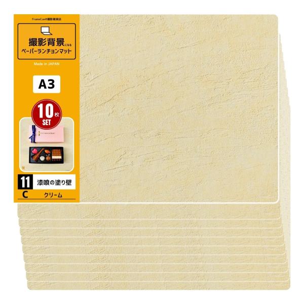 FrameCue 10枚セット 11漆喰の塗り壁Cクリーム(1柄×10枚)撮影背景になるペーパーランチョンマット A3 背景紙 ペーパーランチョンマット 撮影 バックペーパー