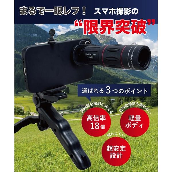 商品名:5E8 スマホ望遠レンズ 18×25 2WAYスタンドセット 手持ち 卓上対応 撮影 観察 モバイルレンズキット