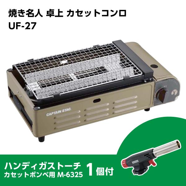 【在庫有・即納】 キャプテンスタッグ 卓上 カセットコンロ 焼き名人 UF-27 ハンディガストーチ付 M-6325 CAPTAIN STAG お得 セット