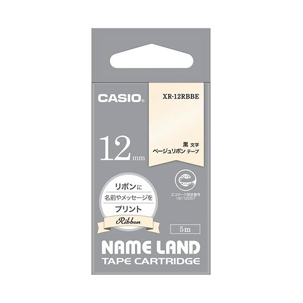カシオ NAME LAND リボンテープ 12mm×5m ベージュ/黒文字 XR−12RBBE 1個(お取寄せ品)