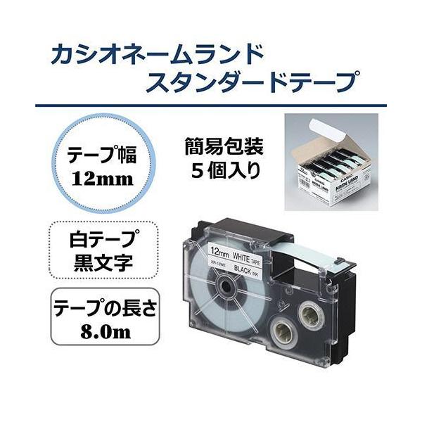 【5本セット】 XR-12WE-5P-E 12mm カシオ ネームランド 純正 テープ カートリッジ 白地に黒文字 白に黒文字 スタンダードテープ 5本入り