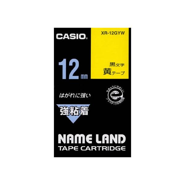 カシオ ネームランド用テープ 強粘着 12mm 黄 黒文字 XR-12GYW 強粘着 ネームランドテープ カシオ ネームランド 事務機器