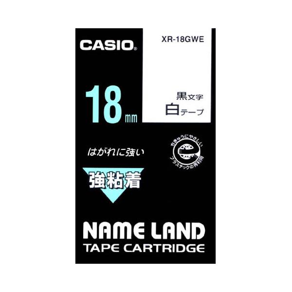カシオ計算機 強粘着テープ XR−18GWE 白に黒文字 18mm XR−18GWE