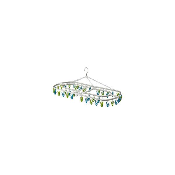 - 【商品解説】●角ハンガーに欲しい要素を詰め込んだ丈夫で清潔で機能的な洗濯物干しハンガー。●丈夫なリブ付きアルミフレーム。●二重配置のピンチで隠し干しOK。●アルミ製リブ+金属製リングで頑丈。●軽くて丈夫、欲しい機能を満たした適度なサイズの44ピンチ。【スペック】●型式:66281 グリーン×ブルー(66281)●JANコード:4560108662815仕様1:商品サイズ:W820×D375×H335mm、収納時サイズ:W420×D375×H50mm仕様2:耐荷重:5kg仕様3:材質:[本体フレーム]アルミニウム[ジョイント部分・ピンチ]ポリプロピレン[ワイヤー]ステンレスこの商品は宅配便でお届けする商品です出荷可能日から最短日時でお届けします。※出荷完了次第メールをお送りします。配送サービス提供エリアを調べることができます「エリア検索」をクリックして、表示された画面にお届け先の郵便番号7桁を入力してください。ご購入可能エリア検索お買い上げ合計3,980円以上で送料無料となります。※3,980円未満の場合は、一律550円(税込)となります。●出荷可能日から最短日時でお届けします。(日時指定は出来ません。) ※お届け時に不在だった場合は、「ご不在連絡票」が投函されます。 「ご不在連絡票」に記載された宅配業者の連絡先へ、再配達のご依頼をお願いいたします。●お届けは玄関先までとなります。●宅配便でお届けする商品をご購入の場合、不用品リサイクル回収はお受けしておりません。●全て揃い次第の出荷となりますので、2種類以上、または2個以上でのご注文の場合、出荷が遅れる場合があります。詳細はこちら■商品のお届けについて商品の到着日については、出荷完了メール内のリンク(宅配業者お荷物お問い合わせサービス)にてご確認ください。詳しいお届け目安を確認する1度の注文で複数の配送先にお届けすることは出来ません。※注文時に「複数の送付先に送る」で2箇所以上への配送先を設定した場合、すべてキャンセルとさせていただきます。