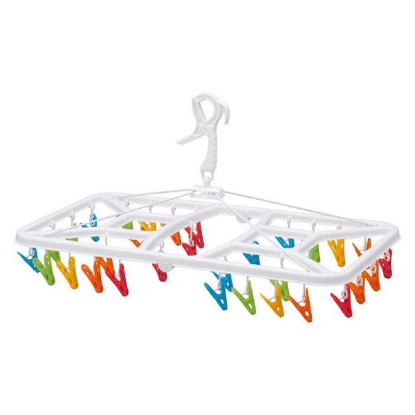 - 【商品説明】ベランダの限られたスペースでもコンパクトに収まる洗濯ハンガー 丈夫なビッグフレーム ピンチが絡みにくく、扱いやすいワイヤータイプ フックがキャッチ式なので風が強い日も安心【仕様】●32ピンチ ●使用時サイズ:約幅63.2×奥行34.5×高34cm ●収納時サイズ:約幅32.5×奥行6×高34.5cm ●重量:約470g ●材質:ポリプロピレン、鋼線、スチール