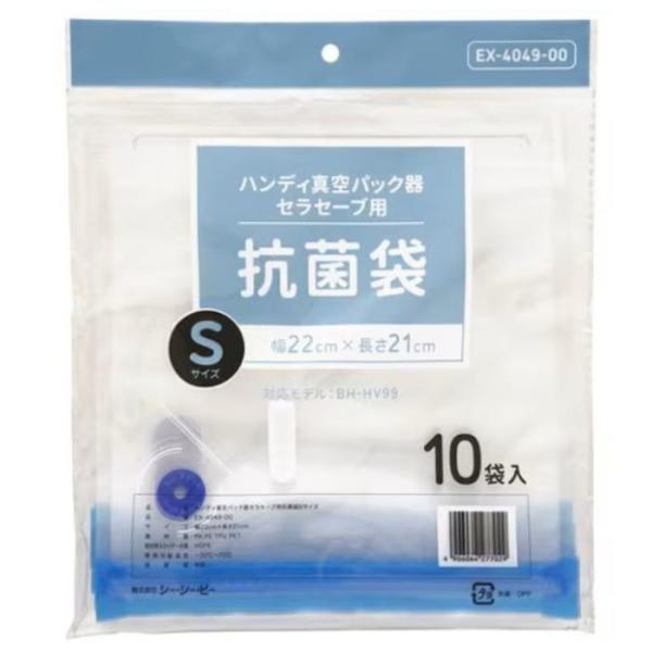 - ハンディ真空パック器 セラセーブ抗菌袋 Sサイズ10枚入り(サイズ幅210×長さ220mm)