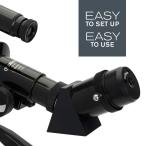 - サイズ:457×177×355mm 個装重量:1000g素材・材質:ABS樹脂、光学グラス、アルミ合金仕様:光学系:屈折式(アクロマート)、対物主鏡口径:50mm、焦点距離:360mm、口径比:F7.2、集光力:肉眼の51倍、分解能:2.32秒、極限等級:10.3等星、コーティング:フリーコート、ファインダー:2×20mm、架台形式:経緯台式付属品:接眼レンズ:8mm(45倍)・20mm(18倍)、45度正立プリズム、専用キャリングバッグ製造国:中国説明 組立、操作はとても簡単です。三脚はワンタッチ開脚式、鏡筒はネジ1本締めるだけ、工具は一切必要ありません。架台部には、目標を捉えやすく操作の簡単なパン棒付の経緯台を採用。対物レンズは50mmのアクロマートレンズを搭載。光の透過率を格段と向上させるフリーコートを施しているので明るくシャープな視界を確保しています。天体・地上兼用タイプなので月や惑星、さらには野鳥や風景の観察などその用途は無限です。