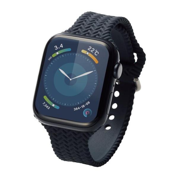 (エレコム) Apple Watch バンド 49mm 45mm 44mm 42mm シリコン 編み込み風 ブラック AW-45BDSCBBK