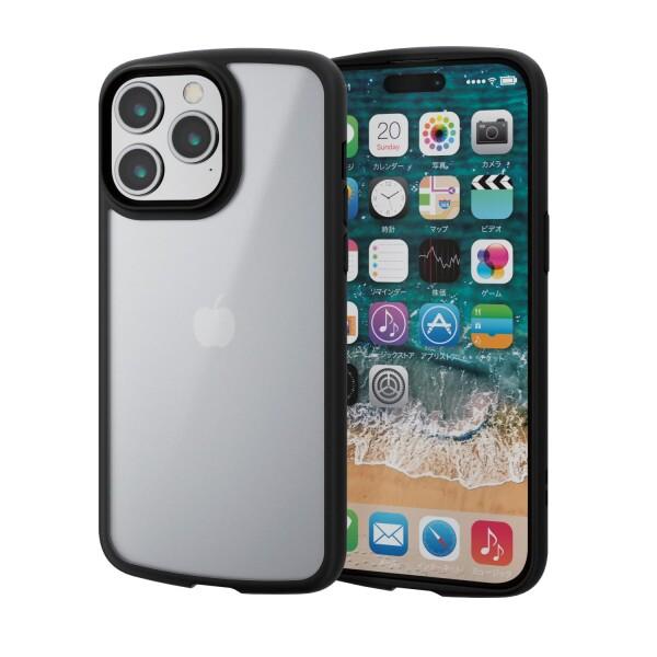 エレコム iPhone15 Pro Max ケース TOUGH SLIM LITE 半透明 耐衝撃 衝撃吸収 薄型 軽量 指紋防止 ストラップシート付き ストラップホール付き ブラック PM-A23DTSLFCSBK