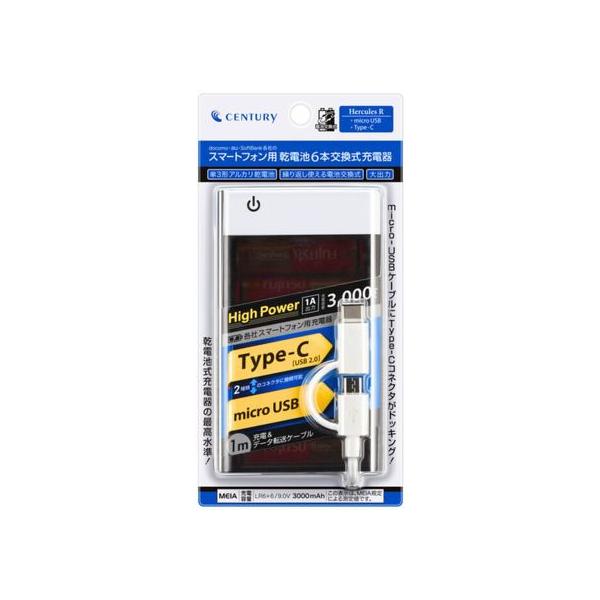 センチュリー ヘラクレス リターンズ タイプC用 電池式充電器 1m モバイルバッテリー バッテリー 充電器 スマホ タブレット関連品