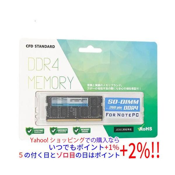 - 商品情報メーカー名CFD Standard規格/速度 DDR4-2666サイズSO-DIMM 応答速度CL 16-18-18-35電圧1.2V対応RoHS:◯PSE:対象外電波法:対象外保証永久保証 備考 ※画像と基板デザインやチップ構成が異なる場合があります。※本製品の故障内容を問わず、ご使用機器本体のダメージや記録されたデータの破損または消失については責任を負いかねます。保証規定をお読みの上、ご利用ください。※製品の仕様・付属品などは予告なく変更される場合があります。 注意モニター発色の具合により、色合いが異なる場合がございます。関連商品シー・エフ・デー販売 CFD Standard ノートPC用 メモリ ...【P15倍 3/4 20:00~3/11 01:59】シー・エフ・デー...【P15倍 3/4 20:00~3/11 01:59】CFD販売 Pa...25,209円25,209円26,646円シー・エフ・デー販売 CFD販売 CFD Standard デスクトッ...シー・エフ・デー販売 CFD販売 CFD Standard デスクトッ...【P10倍 3/4 20:00~3/11 01:59】シー・エフ・デー...25,612円25,612円25,209円【P15倍 3/4 20:00~3/11 01:59】シー・エフ・デー...【P15倍 3/4 20:00~3/11 01:59】シー・エフ・デー...【P15倍 3/4 20:00~3/11 01:59】CFD販売 ノー...25,209円25,636円25,636円シー・エフ・デー販売 CFD販売 CFD Standard ノートPC...【P15倍 3/4 20:00~3/11 01:59】シー・エフ・デー...【P15倍 3/4 20:00~3/11 01:59】CFD販売 Pa...3,713円12,897円25,434円シー・エフ・デー販売 CFD Standard ノートPC用 メモリ DDR4 2666 (PC4-15600) 16GB×1枚 260pin SODIMM 相性保証 D4N2666CS-16G DDR4-2666 ノート用メモリ SO-DIMM 1枚組 ■安心オールインワン CFD Standard メモリCFD Standardブランドのメモリは、安心オールインワン!メモリ選びで迷われた時にも、安心してお選びいただけます。日本で一番メモリの販売実績のあるブランドであるCFD販売が選別したモジュールです。DRAMチップにはCFDの刻印がございます。*安心その1:お使いのパソコンのメモリ増設、交換にお困りの際に気軽に相談できるコンシェルジュサービス!安心その2:相性問題で動作しない時も、購入後30日以内であれば相性保証サービスが申し込めます!安心その3:商品故障は長期で安心の永久保証付き!購入前から購入後まで、ずっと安心が付いてくる、信頼と品質のCFDブランドメモリです。* BCN Award 2012〜2022年 メモリ部門1位を連続受賞。■安心の永久保証CFD Standardのメモリモジュールは製造前・工場出荷前に厳格な品質テストを受けて出荷されており、ハイクオリティな製造に自信を持っております。その自信から保証に関しても永久保証を提供致します。■最新機材による厳しい品質チェック品質保証の表れでもある、CFDロゴがメモリチップにマーキングされています。性能・品質を担保するため、協力工場による数百に渡るチェック・テスト工程をパスしたものにのみ、品質保証としてDRAMチップにCFDのロゴの刻印を施しています。■安心のメモリ相性保証サービス 対象製品ですお買い求めのCFD販売ブランドのメモリで、お使いのシステムでの動作に相性問題が発生した場合に、ご購入後1ヶ月以内であれば返品対応をお受けいただけます。 10