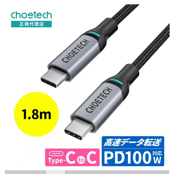 CHOETECH USB Type-Cケーブル XCC-1002 USB-C to USB-C MacBook Pro対応 100W急速充電 ナイロンケーブル スマホ 充電 丈夫 1.8m 480Mbps