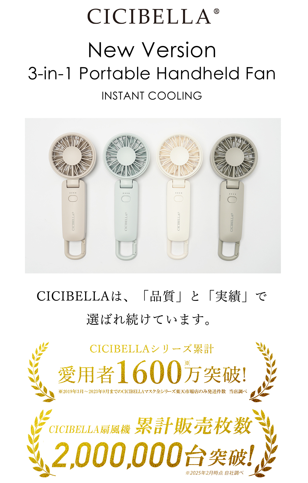 ハンディファン 3WAY 扇風機 超静音 卓上扇風機 2026最新モデル 首かけ 小型扇風機 大風量 長時間 おしゃれ 軽量 吊り下げ 扇風機 usb cicibella 爆買