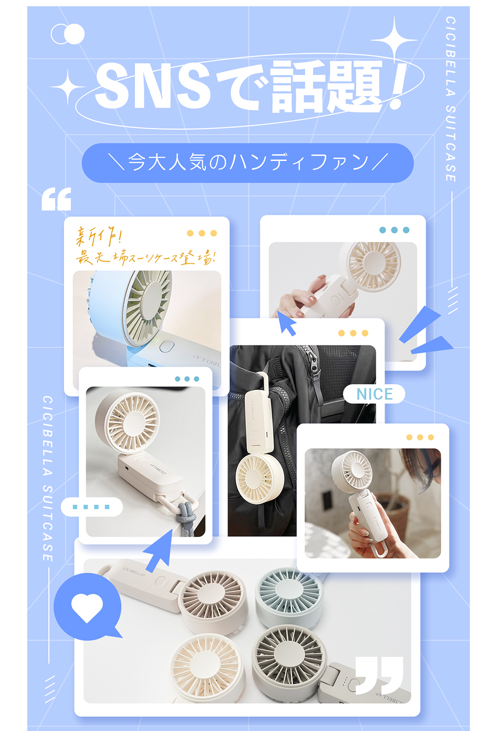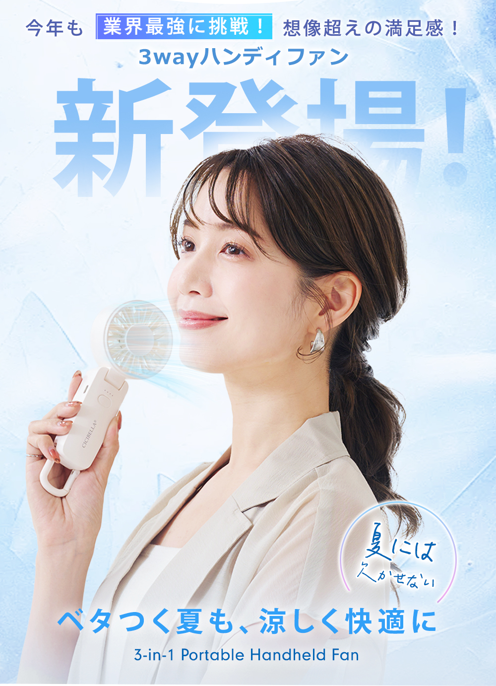 超軽量&静音設計 で、どこでも快適に涼める万能ハンディファン!