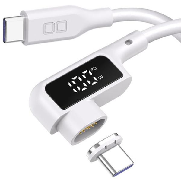 CIO ディスプレイ表示付き L字型マグネットシリコンケーブル 100W 2m CIO-SLLMG-SC-CC2-WH