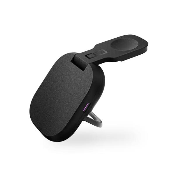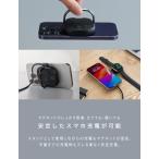 ・【持ち運べるワイヤレス充電スタンドとして】金属製のスタンドを起こした状態で、Magsafe(マグセーフ)対応のiPhone 17/16/15/14/13/12各シリーズにマグネットで吸着し、アームを展開することでApple Watch(アップルウォッチ)もiPhoneも同時充電できます。スマホスタンド + 3in1の充電ステーションのような機能を凝縮しており、これまで旅行や出張時に複