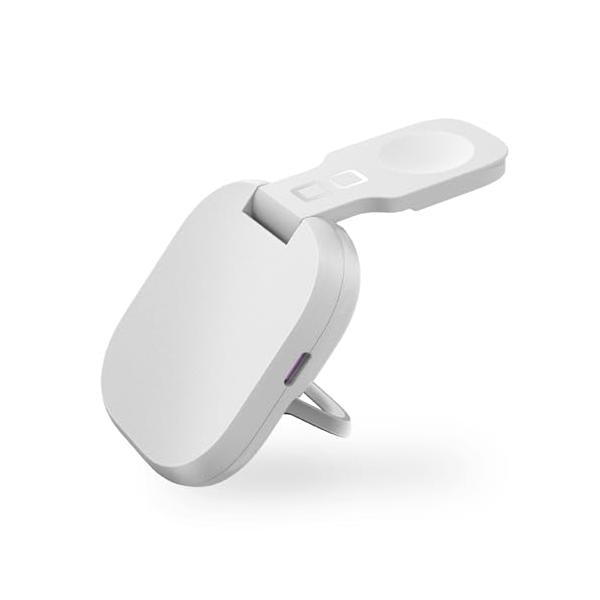・【持ち運べるワイヤレス充電スタンドとして】金属製のスタンドを起こした状態で、Magsafe(マグセーフ)対応のiPhone 17/16/15/14/13/12各シリーズにマグネットで吸着し、アームを展開することでApple Watch(アップルウォッチ)もiPhoneも同時充電できます。スマホスタンド + 3in1の充電ステーションのような機能を凝縮しており、これまで旅行や出張時に複