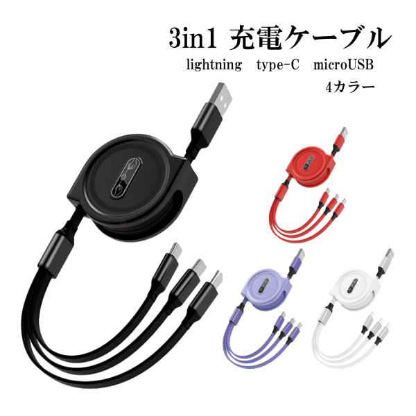 スマホ 3in1 ケーブル 伸縮充電ケーブル 同時充電 ポータブル iPhone Lightning MicroUSB type-C USB 充電