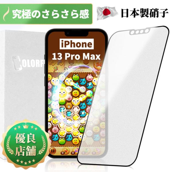 【究極のさらさら感】iPhone 14Plus 13 ProMax ガラスフィルム アンチグレア マット AG加工 全面保護 指紋防止 反射防止 つや消し 日本製AGC硝子