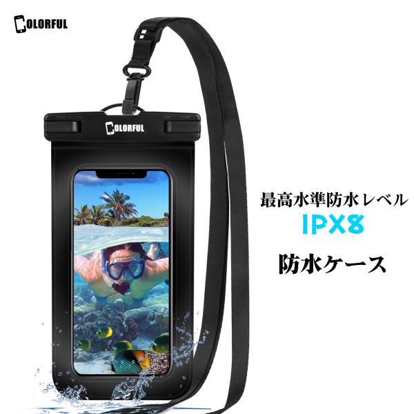 防水ケース 顔認証対応 完全防水 スマホ防水ケース iPhone 16 Pro Max 6.8インチ以下機種対応 指紋 Face ID 認証 ネックストラップ付き 水中撮影