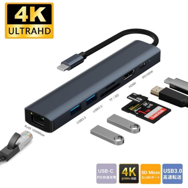 COOPO 7-in-1 USB-C ハブ 100W USB Power Delivery 対応 LANポート USB 3.0ポート 4K出力対応 HDMIポート 高速データ転送 microSD&SDカード スロット搭載