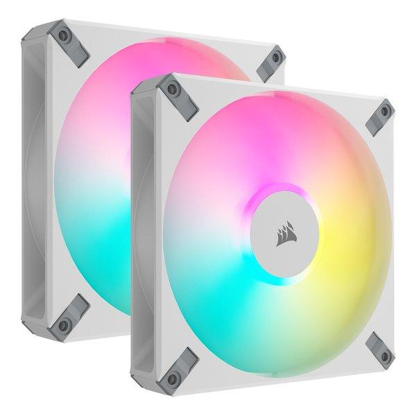 - CORSAIR AF ELITE Series, AF140 RGB ELITE WHITE, 140mm Fluid Dynamic RGB Fan with AirGuide, Dual Pack with Lighting Node CORE XT