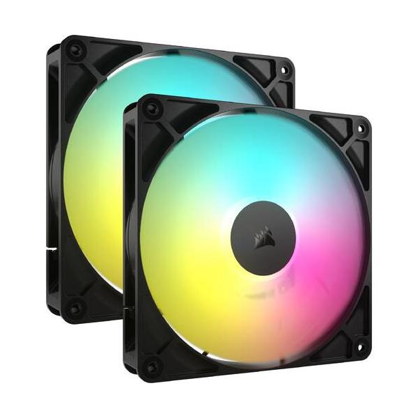 - CORSAIR コルセア 8個のRGB LEDを搭載 140mm PWMファン 2個入り ▼サイズ:14cm ▼(最大)ファン回転数:1700rpm ▼LED:ARGB ▼フレームカラー:ブラック系 ▼接続方式:4pin (PWMファン)