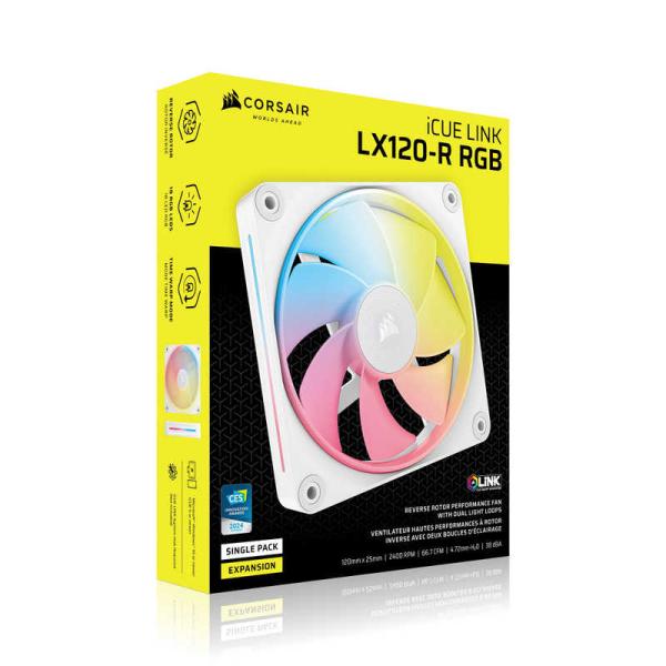 - iCUE LINK LX120-R RGB WHITE Single Reverse Fan ExpansionCORSAIR LX-R RGB Series、 iCUE LINK LX120-R RGB White、 120mm RGB Fan、 Single Fan