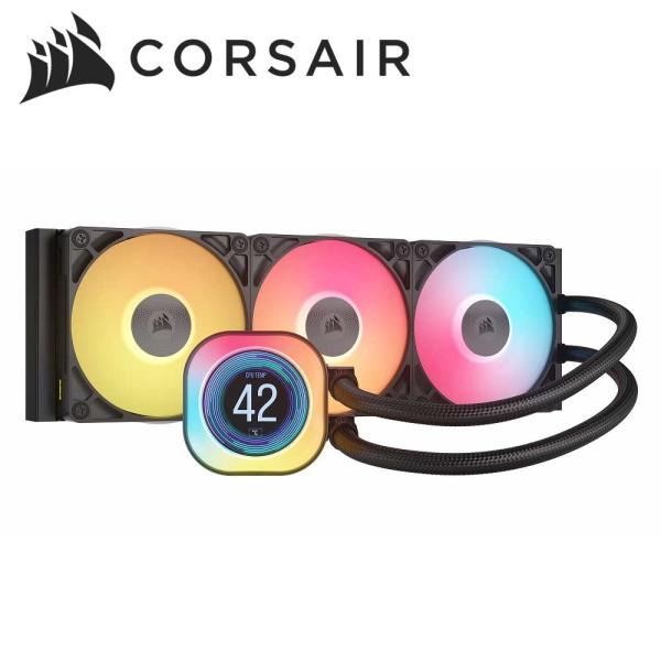 - CORSAIR コルセア ポンプヘッドにLCDスクリーン搭載 360mmラジエーター 一体型水冷CPUクーラーポンプヘッドにLCDスクリーン搭載 360mmラジエーター 一体型水冷CPUクーラー■ 対応ソケット intel:1851/1700■ 対応ソケット AMD:AM5/AM4■ ファンサイズ:120mm×3 (360mm)■ 色:ブラック系■ LED:ARGB★ カスタマイズ可能な2.1 インチ 480x480 LCD スクリーンは、システム温度、画像、GIF アニメーションを表示★ ポンプ周辺には20個のRGB LED、ファンには8 個のRGB LEDを搭載★ 簡単かつスマートにPCを構築可能な「iCUE LINK」に対応★ 最高の熱効率を実現するFlowDriveエンジンを搭載★ 静音性と耐久性に優れた磁気ドームベアリングファンを採用★ Intel ソケット LGA 1851 および AMD AM5 との完全な互換性★ 安心の6年保証■ ファン回転数:300〜2100rpm ±10%■ ラジエーター寸法:396×120×27mm■ 対応ソケット(Intel) LGA 1851/1700(AMD) Socket AM5/AM4※ 製品及び付属品のデザイン・色・仕様等は予告なく変更される場合があります