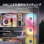 二重ライトループで鮮やかな RGB ライティング:ファンごとに 18 個の LED が内側と外側のループ全体に広がり、鮮やかでカスタマイズ可能なライティングを実現し、すべての iCUE RGB デバイスと同期できます。