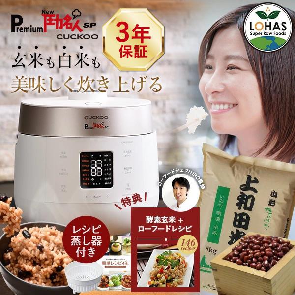 炊飯器 発芽酵素 玄米 Premium New 圧力名人SP コシヒカリ玄米5kg 北海道産小豆300gセット 3年保証 レシピ本&専用蒸し器付 マイコン式