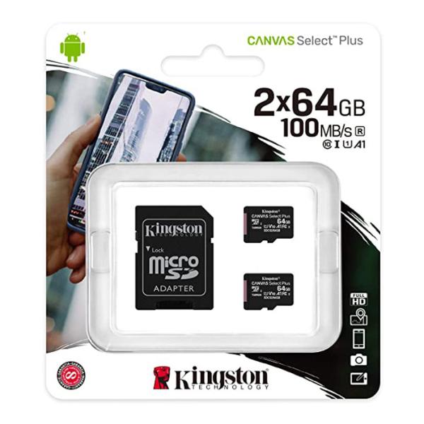 Kingston|キングストン microSDXCメモリカード 64GB Class10 UHS-I U1 V10 A1(2個入りパック) Canvas Select Plus SDCS2/ 64GB-2P1A 返品種別A