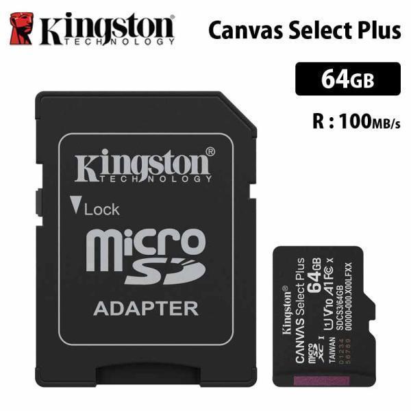 キングストン Canvas Select Plus 64GB microSDカード UHS-I U1 V10 A1 SDカードアダプタ付 SDCS3/64GB Kingston microSD 国内正規品
