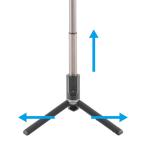 - 種別:三脚 NOTE自撮り棒がスタンドに変身!!・持ち運びらくらく。500mlのペットボトルより小さく畳める。・取り外し可能なブルートゥース対応リモコン付き(iOS/Android対応)。離れたところからでもシャッターが切れる。・グリップ部分を開いてスタンドとして使用可能。・縦・横対応全高(スタンド時):685mm全高(自撮り棒時):740mm縮長:183mmグリップ径:28mm段数:6段質量:159g推奨積載質量:200g対応スマートフォンサイズ:幅56~80mm/厚み10mm以内