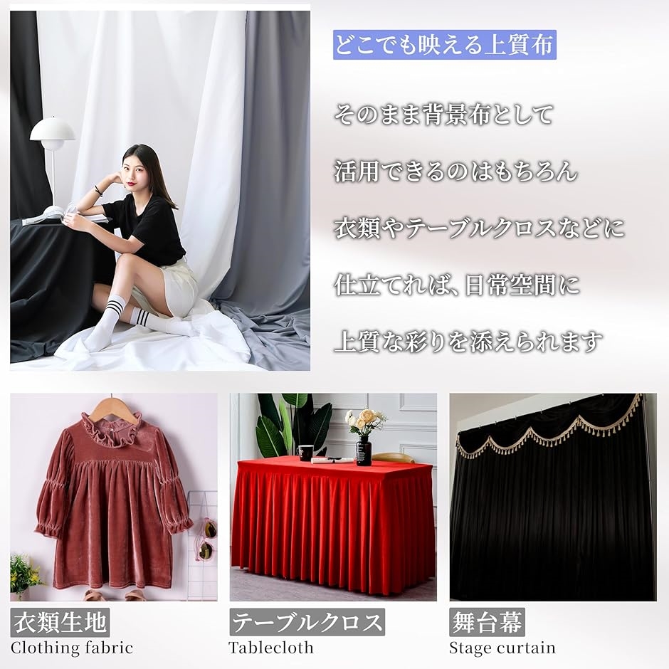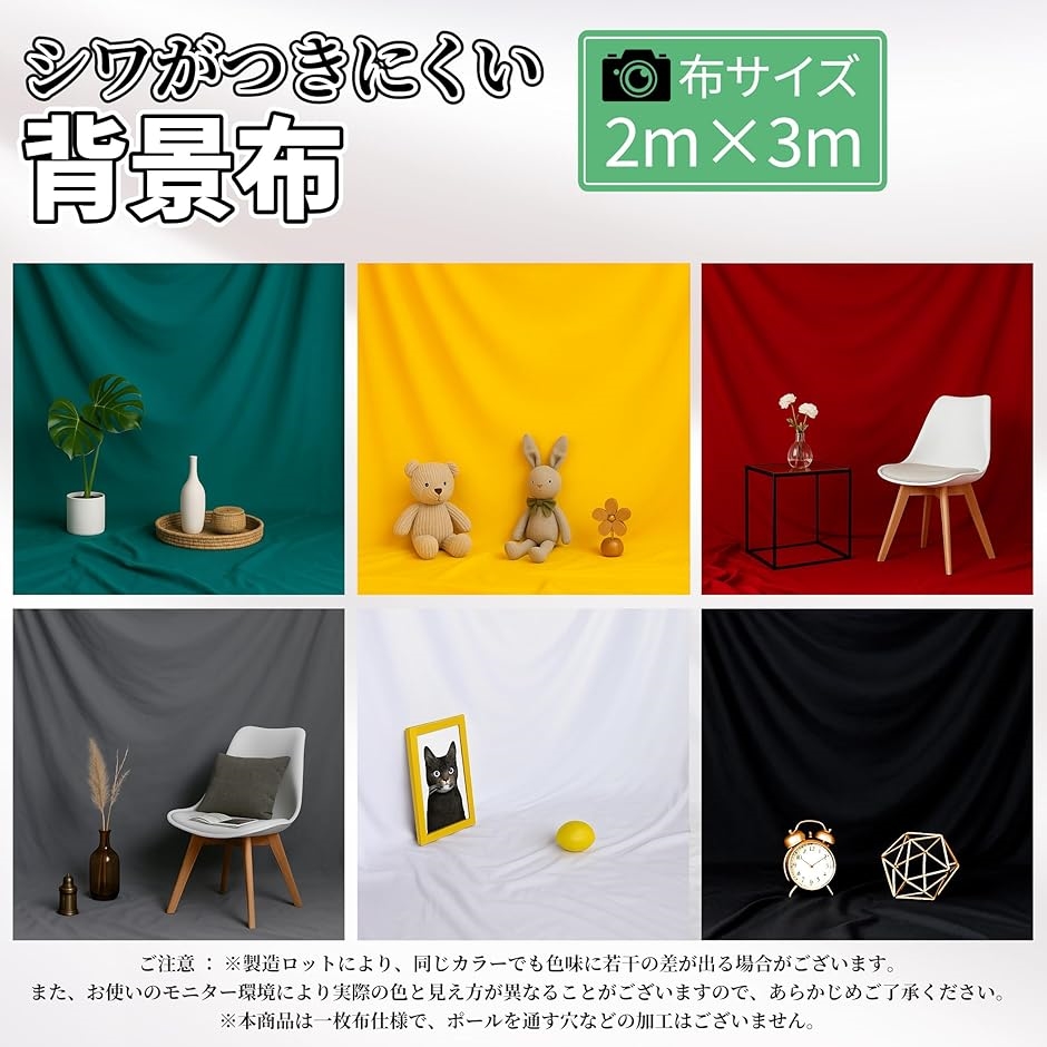 商品仕様 : サイズ:2mx3m 特長:シワに強い/丈夫・お手入れラク/写真・動画配信・イベント・DIY