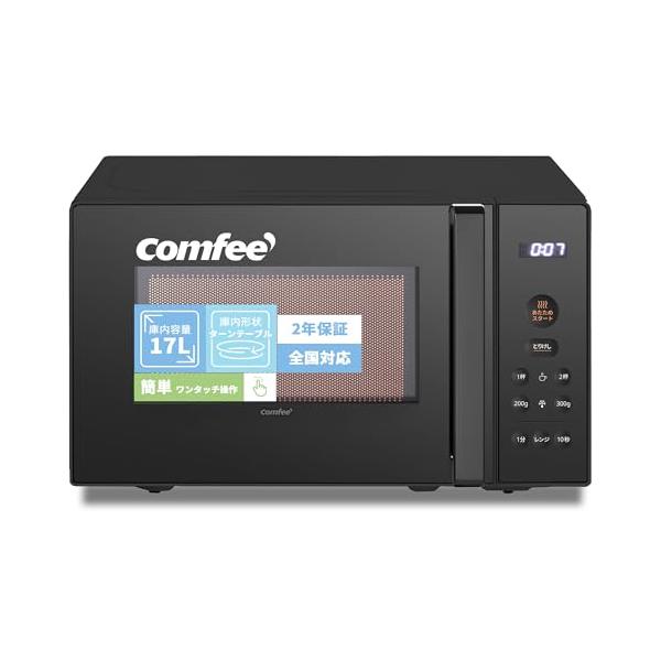 コンフィー(COMFEE') 電子レンジ 17L ターンテーブル 押しやすいボタン式 ヘルツフリー シンプル機能 消音モード付き 一人暮らし 二