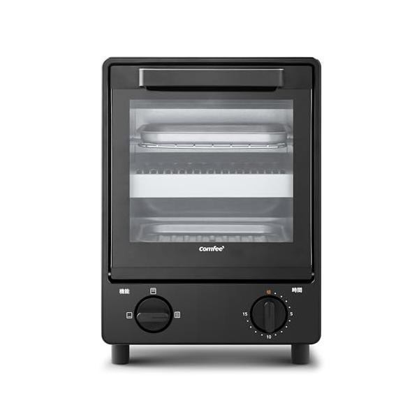 COMFEE' オーブントースター 縦型 上下2段構造 同時調理可能 3段階温度調節 15分タイマー 焼きムラ抑え スライドオープンドア CF-