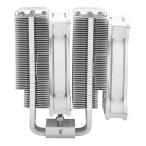 - ■6本のヒートパイプ:6本のヒートパイプの両端が両側のヒートシンクに最適なレイアウトで配置され、効率的にツインタワーフィンへ熱を伝えます。■デュアルタワーヒートシンク:デュアルタワーで表面積が2倍になったヒートシンクに6本のヒートパイプを最適なレイアウトで構成することでフィン全体に熱を伝え、2基のファンで排熱することで効率的な冷却を可能にしています。■高さ157mm:高さを157mmに抑えることでメモリとの干渉を抑え、PCケースのクリアランス範囲内に収まる設計を採用、多くの機器との互換性を確保しています。●カラー:ホワイト●製品サイズ:125 x 137 x 157mm●対応ソケット(intel):LGA1700/1200/1151/1150/1155/1156●対応ソケット(AMD):AM5/AM4●ヒートパイプ数:6●ファンサイズ・個数:120 x 120 x 25mm Halo 2 120mm ARGBファンを2個搭載●ファン回転数:650~2050rpm●ファン風量:最大51.88CFM●ファン風圧:2.89mmH2O●ファンノイズレベル:最大 27dBA●ファンベアリング:ライフルベアリング●ファン消費電力:3.36W●電圧:ファン 12VDC ・ LED 5VDC●コネクタ:4ピン PWM + 3ピン ARGB●その他機能・特徴:サーマルグリス付属、ARGB自動検出機能●付属品:クイックスタートガイド、アクセサリーキット、高性能サーマルグリス(CryoFuze)