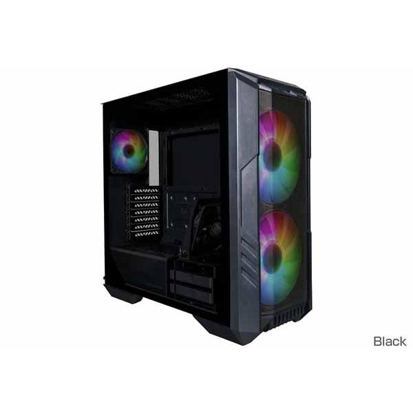 - 商品説明★ フロントにメッシュパネルと200mm ARGBファンを2基搭載フロントに大型メッシュパネルと大型200mm ARGBファンを2基使用することで高い通気性を確保しており、内部の温度を最適に保ちます。付属のARGBハブを活用することで光のカスタマイズを楽しむこともできます。★ 角度調節機能付GPUファンDDケージの上部にGPU用の120mm冷却ファンを搭載。様々なサイズのGPUやパーツ構成に合わせてファンの角度を調節することができます。★ ツールフリー 強化ガラスサイドパネル強化ガラスサイドパネルはピンで固定されており、ツールレスで簡単に取り外すことができるため、手軽にケース内部へアクセスすることができます。★ 着脱式トップパネルトップパネルは完全に取り外すことができるため、組立やメンテナンスなど、各種作業を効率的に行う事ができます。★ USB 3.2 GEN 2 Type-C対応I/Oパネルに搭載されたUSB3.2 Gen 2 Type Cポートにより、高速なデータ転送をサポートします。スペック* 外装カラー: ブラック* 材質 - 外装: スチール、メッシュ、プラスチック* 材質 - 左サイドパネル: 強化ガラス、スチール* 製品寸法 (L X W X H): 516 X 224 X 510mm (突起部を含む)* 対応マザーボード: ITX、MICRO ATX、ATX、SSI CEB、E-ATX*(*最大12インチ X 14.1インチ、 ケーブルマネジメントやケースの機能に影響が出る場合あり、ケーブルカバーとGPUファンブラケットを取り外して下さい)* 拡張スロット: 7* 5.25インチ ドライブベイ: なし* 2.5インチ / 3.5インチ ドライブベイ (COMBO): 2* 2.5インチ ドライブベイ: 2* I/O パネル: USB 3.2 GEN 1 (USB 3.0) X2、USB 3.2 GEN 2 TYPE-C X1、 オーディオジャック X1、RESET/ARGBボタン X1* ARGBコントローラー: ARGB HUB* 付属ケースファン - フロント: 200mm ARGB Fan X2* 付属ケースファン - リア: 120mm SickleFlow PWM ARGB X1* 付属ケースファン - HDDケージ上部: 120mm SickleFlow PWM (GPU Fan) X1* 対応ケースファン - トップ: 120mm X3、140mm X2、200mm X2* 対応ケースファン - フロント: 120mm X3、140mm X2、200mm X2、*200mm 取付穴間隔154 X 154、厚さ最大30mmまで* 対応ケースファン - リア: 120mm X1* 対応ケースファン - HDDケージ上部: 120mm X1* 対応水冷ラジエーター - トップ: 120mm、140mm、240mm、280mm、360mm* 対応水冷ラジエーター - フロント: 120mm、140mm、200mm、240mm、280mm、360mm* 対応水冷ラジエーター - リア: 120mm* クリアランス - CPUクーラー: 167mm* クリアランス - 電源ユニット: 180mm* クリアランス - グラフィックスカード: 410mm* 裏配線スペース: 30mm* ダストフィルター: トップ、ボトム* 対応電源ユニット: ボトムマウント、ATX* メーカー保証: 2年