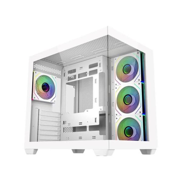 - メーカー COOLER MASTER 商品カテゴリ PCパーツ>PCケース 発送目安 3日〜4日以内に発送予定(土日祝除) お支払方法 銀行振込・クレジットカード 送料 送料無料 特記事項 その他 [PCケース]・シームレスな面取り加工を施したフロント、左サイドの強化ガラスパネルが、つなぎ目をほとんど感じさせない一体感のある外観を実現・マザーボードと電源ユニット/配線用にチャンバーを分離するデュアルチャンバー設計により、エアフローを最適化・右側のチャンバーには上部マウントの電源ユニットスペースと、95mmのケーブルマネジメントスペースを確保し、組み込みも容易・最大10基のケースファンに対応・下から上へと抜ける縦型エアフロー構造により冷却性能を高める・トップ、ボトムに360mmラジエーターを各1基、サイドに280mmラジエーターを搭載可能・サイドに吸気用のリバースブレードファン3基、リアに排気ファンを1基標準搭載・各ファンはデイジーチェーン接続に対応、ARGBはマザーボード同期対応・トップ、ボトムにフルサイズのメッシュパネルを備え、優れたエアフローを確保・最大410mmのグラフィックスカードをサポート・USB 3.2 Gen2x2 Type-Cポート搭載・対応マザーボード:ATX/MicroATX/Mini-ITX(ATX、MicroATXは背面コネクターマザーボード対応)・カラー:ホワイト・製品寸法:425x285x400mm(突起部を含む)、420x285x380mm(突起部を除く) ◆ 270°パノラマ強化ガラスパネル採用 デュアルチャンバーATXケース・ホワイトモデル