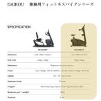 - <組立設置・運び込みサービスにつきまして> ・当サービスは事前決済が前提となりますので「代引でのお支払は不可」となります。 ・商品の配達時に対応することを前提としたサービスのため、「お届け後のマシンの組立」や「他店舗でご購入されたマシンの組立」など組立や運び込みだけのご依頼はできません。 ・商品発送後の組立や運び込みへの変更はできません。 <組み立て設置・運び込みサービス注意事項> ○ ご注文をいただいた時点で搬入経路の確保ができているものと判断させていただきます。 通路が通れない・階段が上がらない・入口が通らないなど搬入経路の確認不足による搬入不可の場合は搬入ができなくてもご返金はお受けできませんので、必ず梱包サイズ・重量をご確認いただき、障害物を含む通路の幅・曲がり角・階段の天井の高さ・階段の切り返しなど搬入経路をしっかりご確認ください。 ○ 螺旋階段は対応ができません。 ○ 商品付属のマット、またはマットを購入された場合は別配送となります。 ○ 付加サービスの配送はチャーター便になるため配達時間の指定はできません。また、通常の配送よりお時間がかかります。(1週間~10日が目安) ○ 沖縄県・離島への対応はできません。 以上をご確認のうえご依頼ください。 商品コード DK-9300UT(DAIKOU社製) 商品名 業務用 アップライトバイク 本体サイズ 約 W68 × L113 × H151cm 本体重量 79kg 折りたたみ 不可 サドル高低調整 約27.8cm サドル前後調整 不可 床面からサドルまで(サドル最低位置時) 約79cm サドルからぺダルまで ハンドル位置調整 不可 負荷方式 電磁制御システム 負荷段階 40段階 負荷調整方法 電動パネル操作 負荷ワット数 最小35~最大410W(60RP) フライホイール規格 直径24.3cm 9.3kg パネル仕様 15.6` HDタッチスクリーン パネル表示 時間 / 距離 / カロリー / 負荷段階 / 速度 / 回転数 / 心拍数 / ワット数 目標プログラム(マニュアルモード) 時間 / 距離 / カロリー 各種プログラム 8種内蔵 HRCモード 〇 ワットモード 〇 心拍測定 心拍数(簡易ハンドグリップ式) タブレットホルダー 〇 ドリンクホルダー 〇 移動用キャスター 〇 連続使用時間 無制限 適応身長目安 約155~210cm 体重制限 180kg 梱包サイズ W56 × L124 × H76cm 梱包重量 100kg 使用電源 AC100V, 50HZ/60HZ, 入力MAX2A、出力 DC12V 4A 材質 スチールパイプ / ABS樹脂 / ウレタン JANコード 4582246939307 メーカー保証 1年/PL保険加入済み 製造工場 中国 注意事項 お客様に組み立てていただく商品です。梱包状態で当店指定の配送業者が納品します。 ご購入前に梱包サイズと本体サイズをご確認ください。 商品の発送後のお客様のご都合による返品は承ることが出来ませんのでご注意くださいますようお願い申し上げます。 食後は2時間程空けてご使用下さい。 その他 ※当サイトに記載の数値やイメージ写真と実物とは些少の差異がございます。 メーカー希望小売価格はメーカーサイトに基づいて掲載しています メーカー希望小売価格はメーカーサイトに基づいて掲載しています メーカー希望小売価格はメーカーサイトに基づいて掲載しています【DK-9300UT】 業務用アップライトバイク 電磁制御システム40段階負荷調整