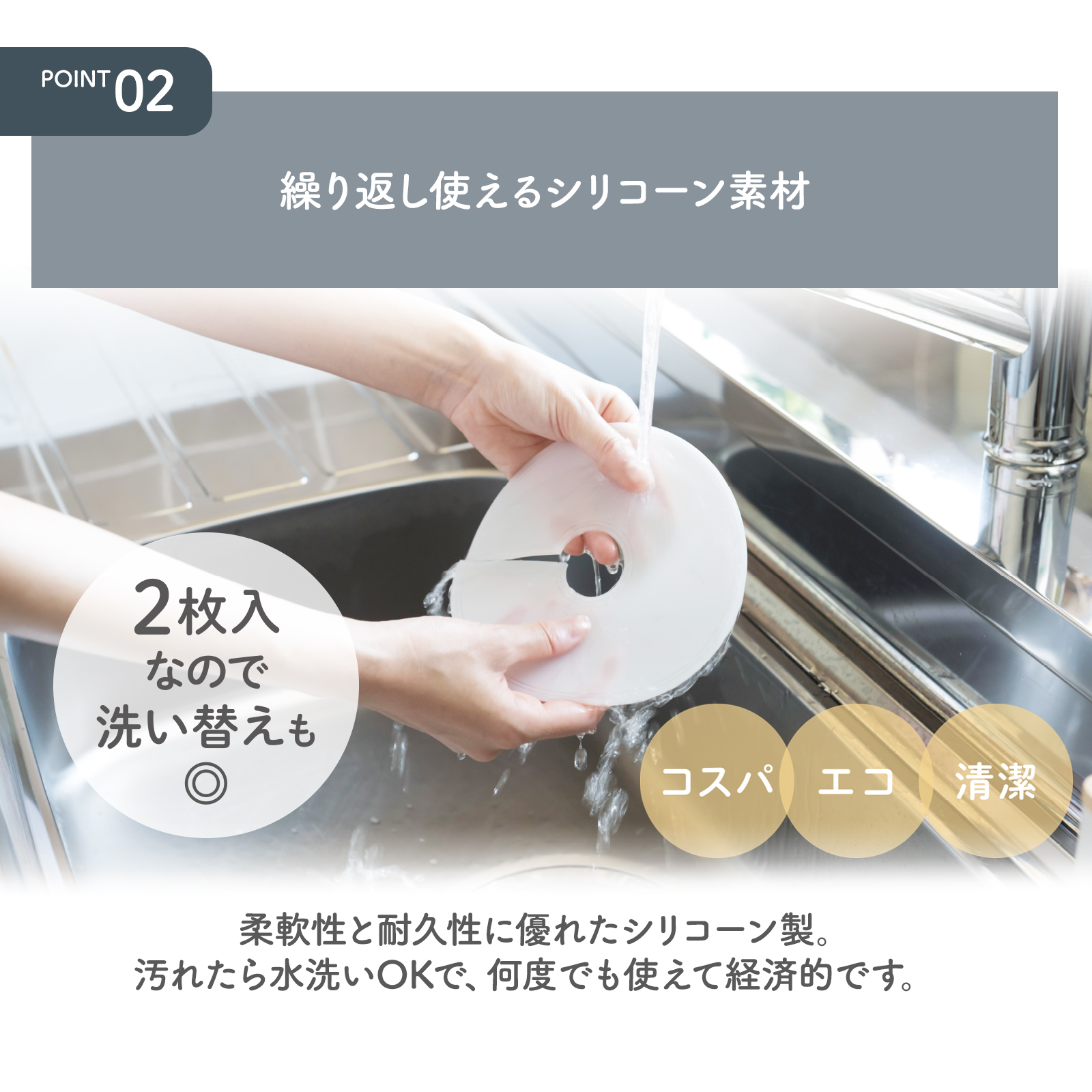 - ■ 商品特長 洗濯機の排水口のニオイや汚れを防ぐ抗菌加工付き排水口カバーです。キッチンや洗面台の排水管のスキマにもお使いいただけます。埃や髪の毛、排水口からの虫の侵入を防ぎ、排水口を清潔に保つことができます ●抗菌加工付き ニオイや汚れを防ぐ抗菌加工付きで、埃や髪の毛、排水口からの虫の侵入を防ぎ、排水口を清潔に保つことができます。 ●繰り返し使える 柔軟性・耐久性に優れたシリコーン素材は、耐熱温度100℃。汚れたら水洗いをして繰り返し使えるので、経済的です。 ●着脱らくらく 切れ目がついているので、着脱簡単、パイプの太さに合わせてカット可能です。(パイプの直径3.5〜4.5cmまで対応)裏面の光沢面が吸着するため、接着剤や工具を使わずにピタッと貼りつきます。 ■商品仕様 色:ナチュラルホワイト 素材:シリコーン 本体寸法:外径約16cm×厚み約0.2cm×内径約3.5〜4.5cm 本体質量:約38.5g(1枚) ※メーカー希望小売価格はメーカーサイトに基づいて掲載しています。 メーカーサイトトップページ メーカー商品ページ ■■■この商品をお探し・ご検討の方■■■ 詳しくは当店にお問い合わせください ■■■ご質問関連項目■■■ 洗濯機 排水口 カバー 洗濯機カバー 排水口 ゴミ受け 排水口 掃除 排水溝リング 洗濯機用 簡単装着 排水溝 虫対策 繰り返し使用 密着 カットOK DIY 消臭 キッチン シンク下 洗面台 汚れ防止 洗面所 浴室 排水溝 洗面台用 洗濯機 排水ホース 洗濯機 排水ホース 掃除 洗濯機 掃除 洗濯機 排水ホース 掃除 外さない 洗濯機 排水ホース 掃除 外せない 洗濯機 排水ホース 掃除 簡単 洗濯機 排水ホース 掃除の仕方 洗濯機 排水ホース 掃除方法 洗濯機 ホース 掃除 洗濯機 ホース 掃除 外側 洗濯機 ホース 掃除方法 洗濯機 ホース 掃除の仕方 洗濯機 ホース 掃除 簡単 洗濯機 ホース ほこり 洗濯機 ホース ほこり 対策 洗濯機 ホース ホコリ 洗濯機 ホース 埃 洗濯機 ホース ほこり ラップ