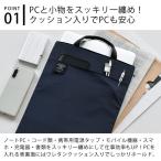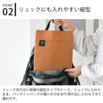 持ち手付きでパソコンケース単体をバッグのように持ち運びしやすく、縦型なので、リュックやトートバッグにも出し入れしやすい形状。