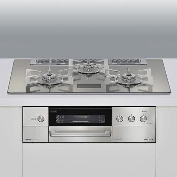 - リンナイ[RINNAI] ビルトインコンロ RHS71W31E13VCASTW/LPG プロパンガス(LPG) 幅75cm AC100V電源タイプ 無水両面焼グリル 左右強火力 レンジフード連動機能 ガラストップ:プラチナミラー 前面パネル:ステンレスRINNAI RHS71W31E13VCASTW LPG