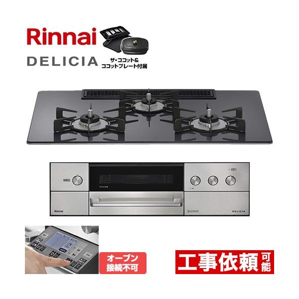 【RHS72W38M15RCSTW】リンナイ DELICIA(デリシア) 3V乾電池タイプ 75cmタイプ 強火力(左・右) 都市ガス ツイードシルバー ココットプレート/ザ・ココット付属 RINNAI