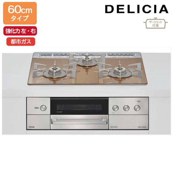 DELICIA(デリシア) 3V乾電池タイプ ビルトインコンロ 幅60cm リンナイ RHS31W38M12RCSTW-13A オーブン接続対応 スパークリングカッパー 【都市ガス】