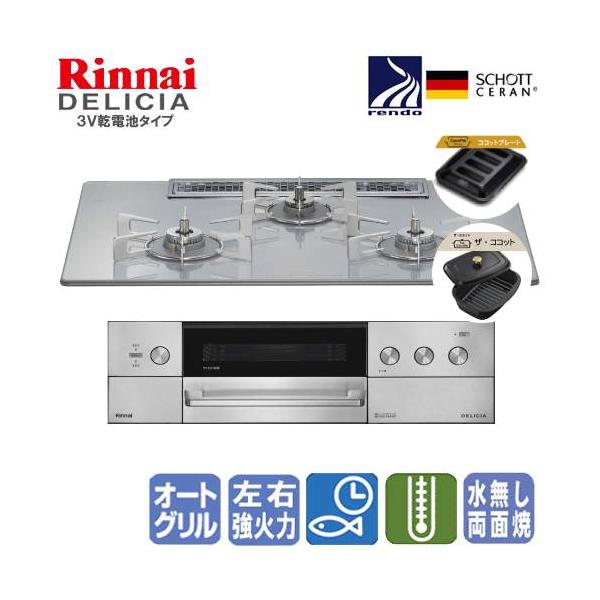 リンナイ ビルトインガスコンロ RHS72W39M14RCSTW デリシア 75cm/3V乾電池タイプ/操作部シンプルタイプ