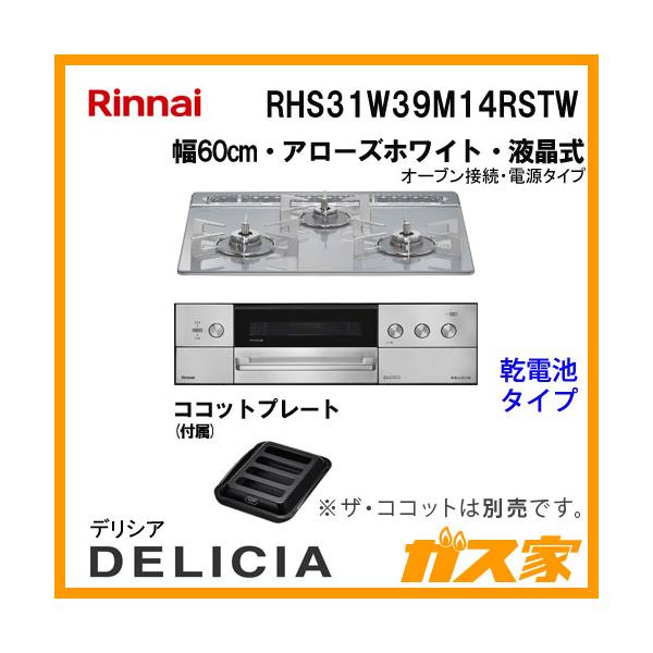 リンナイ RHS31W39M14RSTW ガスビルトインコンロ デリシア 3V乾電池 操作部液晶付 アローズホワイト オーブン接続タイプ 60cm [ココットプレート付属]